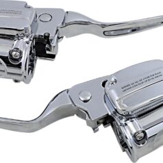 Complete handlebar control kits to fit 1996 thru 2010 Softail, 1996 thru 2011 Dyna, 1996 thru 2007 Touring and 1996 thru 2003 Sportster models. Comes complete with switch housings. Housings accept OEM and OEM style aftermarket switches. All hardware needed is included. Available with 9/16″ bore Master cylinder for Single disc models and 11/16″ for Dual disc models. The handlebar switch housings are a reproduction of the Original Equipment housings and will accept both OEM or aftermarket switches. All parts in these kits are available separately.