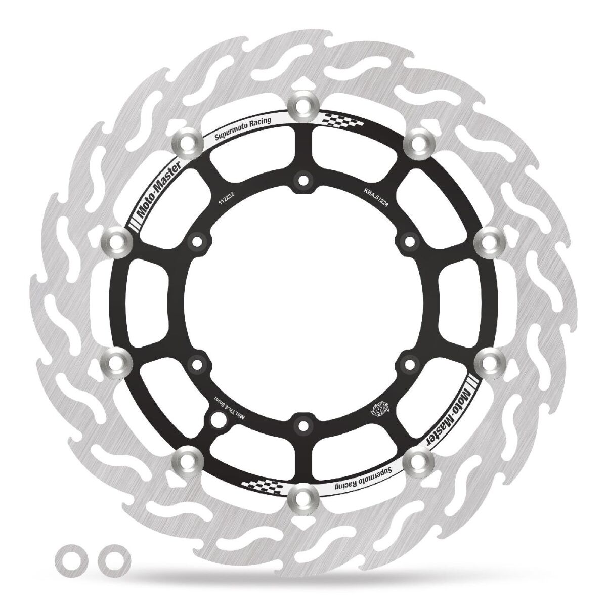 • The inner carrier is an aluminum anodized piece, and rotor thickness has been increased over Moto-Master’s Standard Supermoto Rotors to 5mm