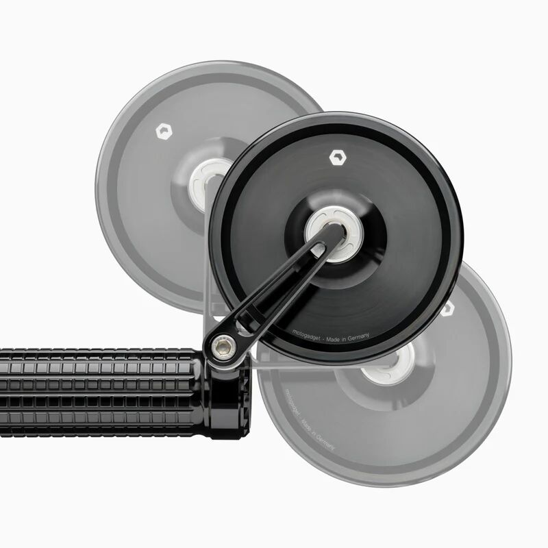 The handlebar end mirror with swivel mirror arm and defined detent angles is perfect for narrow passages or space problems in the garage. The mirror has an ECE marking and can be mounted above or below the handlebar.