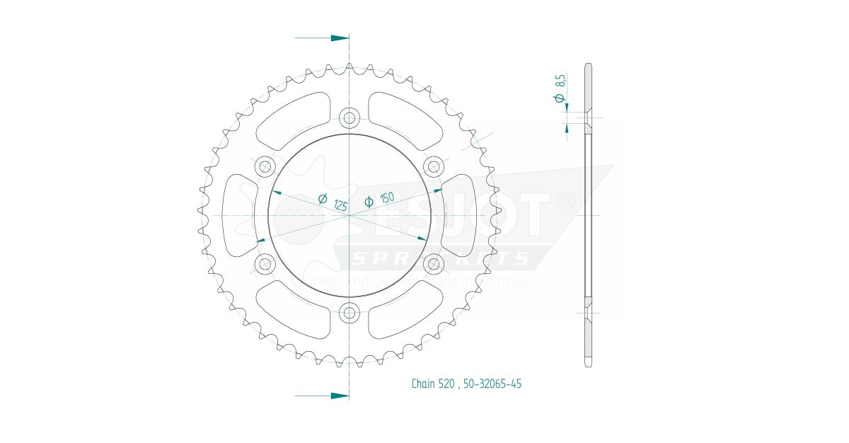 SPROCKET REAR 45T 520 från ESJOT