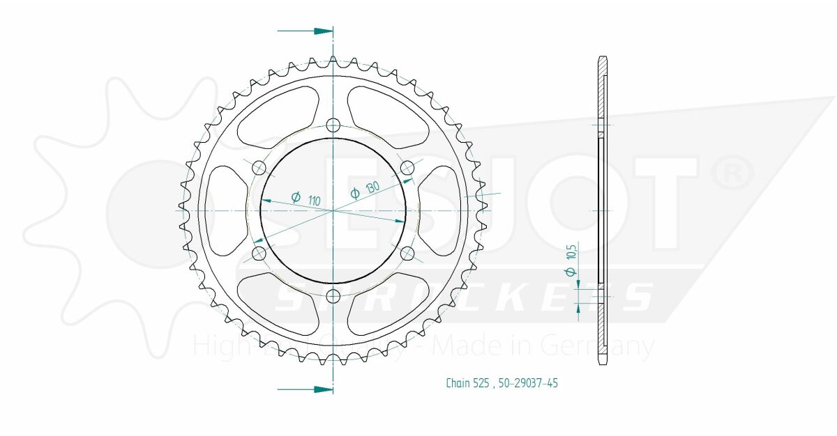 SPROCKET REAR 45T 525 från ESJOT