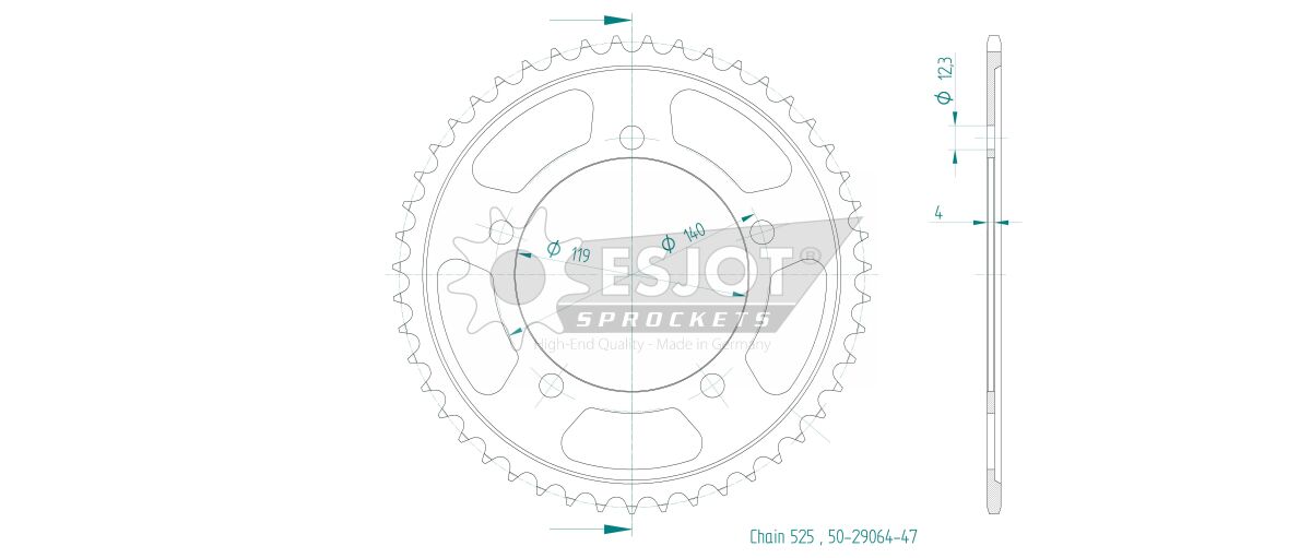 SPROCKET REAR 47T 525 från ESJOT